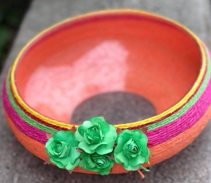 Brighten your home with ‘Flower’. This recycled glass bottle is wrapped with color cords and accented with flowers. Given the name ‘Flower” because of its colorful abundance, this piece will definitely add life and vibrancy to your home. This will make a perfect gift. Water can be added if you choose to add fresh flowers.