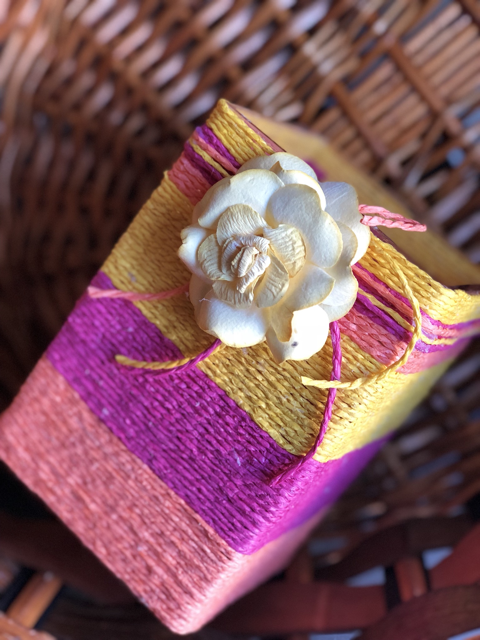 ONLY ONE LEFT!!! Colorful Cord Wrapped Square Glass Vase – ideal for any home decor, it can be used as a vase (water can be added) for fresh flowers. It also can be used for makeup accessories, such as to hold brushes, cotton swabs also hair and nail accessories. These colors are vibrant and will bring life to any space.