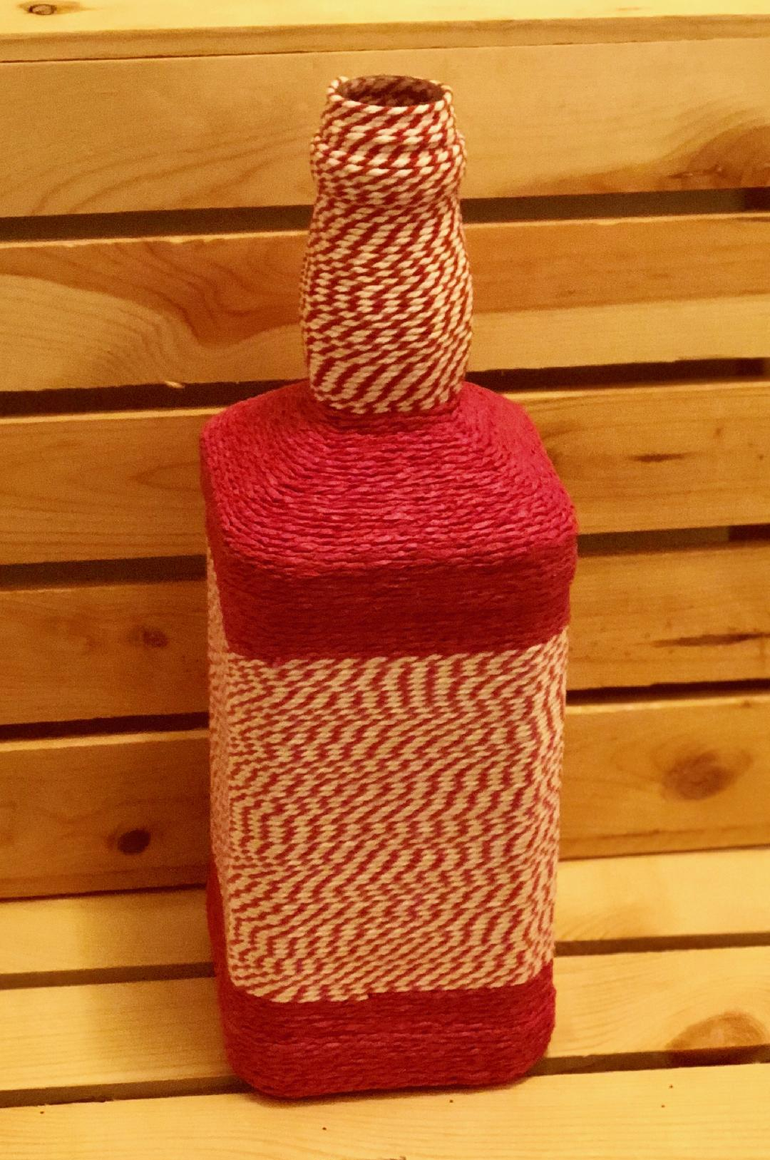 ONLY ONE LEFT!! Red and White cord wrapped recycled bottle, water can be added if you choose to use this as a vase. This is a great addition to your home decor, perfect for gifts.